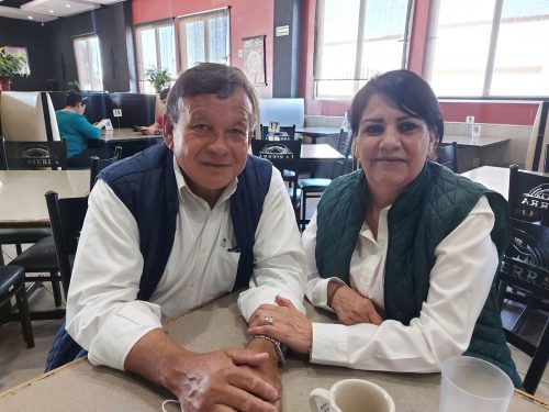 Cabe destacar que el Profe, Galaz realiza sus actividades de campaña acompañado de su esposa Rosa María de Galaz.