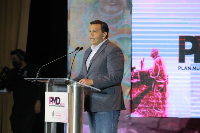 Ciudad Juárez.- El Presidente Municipal, Cruz Pérez Cuéllar presentó el Plan Municipal de Desarrollo 2021-2024 (PMD) que establece los ejes que regirán las políticas de Gobierno enfocadas a lograr la transformación de Ciudad Juárez y atender las necesidades de las y los juarenses.