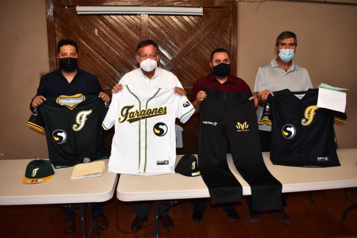 En rueda de prensa celebrada en el Salón de Duela, estuvieron presentes el Tesorero Municipal, el Director de Deportes, el titular de Servicios Públicos, así como el Alcalde Municipal, para presentar las camisolas que como locales y visitantes utilizarán los jugadores de los Faraones en el campeonato estatal “Temporada 2021 Federico Champion Flores».