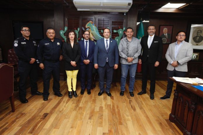 En la reunión, los diplomáticos centroamericanos estuvieron acompañados de Marco Antonio Frayre, de la Cancillería Mexicana; también estuvieron el secretario de Seguridad Pública Municipal, César Omar Muñoz Morales y la coordinadora de Asesores, Daniela González Lara.