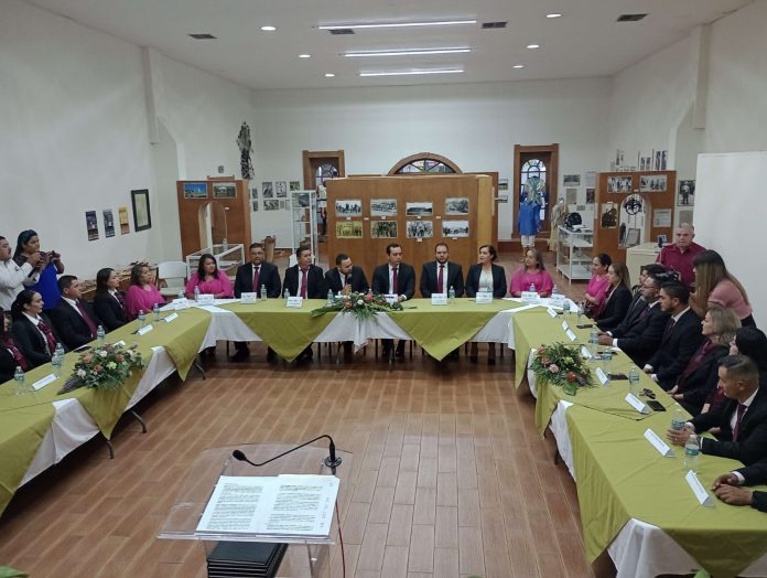 De hecho, utilizó la mayor parte de su mensaje, para elogiar a cada uno de los miembros del órgano colegiado, de los funcionarios del gobierno y DIF municipal, incluida su esposa Carolina Meza y el Síndico Raymundo Bejarano.