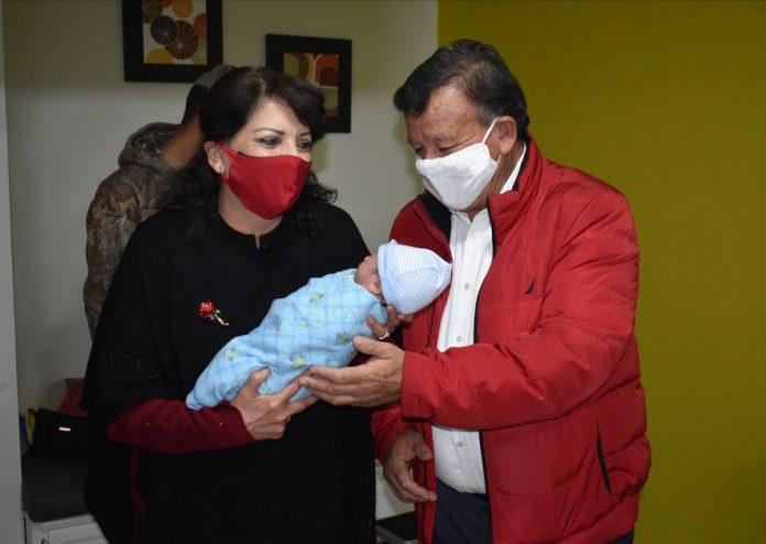 Nuevo Casas Grandes. – Por tercer año consecutivo, el alcalde Héctor Mario Galaz y la Presidenta del DIF Municipal Rosa María García de Galaz, a nombre de la Administración Municipal, hicieron entrega de obsequios a los padres del primer bebé del año 2021.